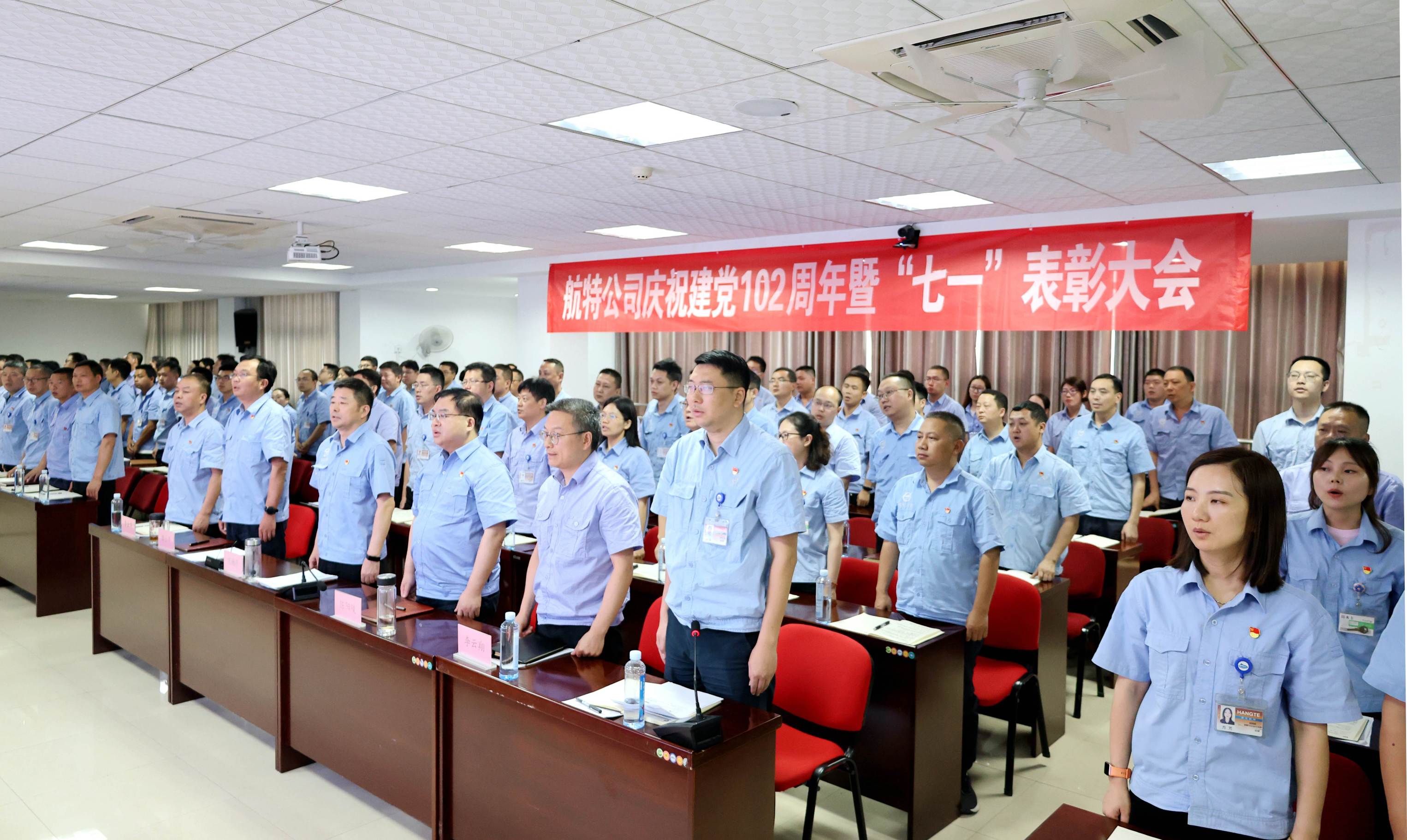 6月30日,航特裝備召開慶祝中國共產(chǎn)黨成立102周年暨“七一”表彰大會。(珠海地區(qū)以視頻形式參會)