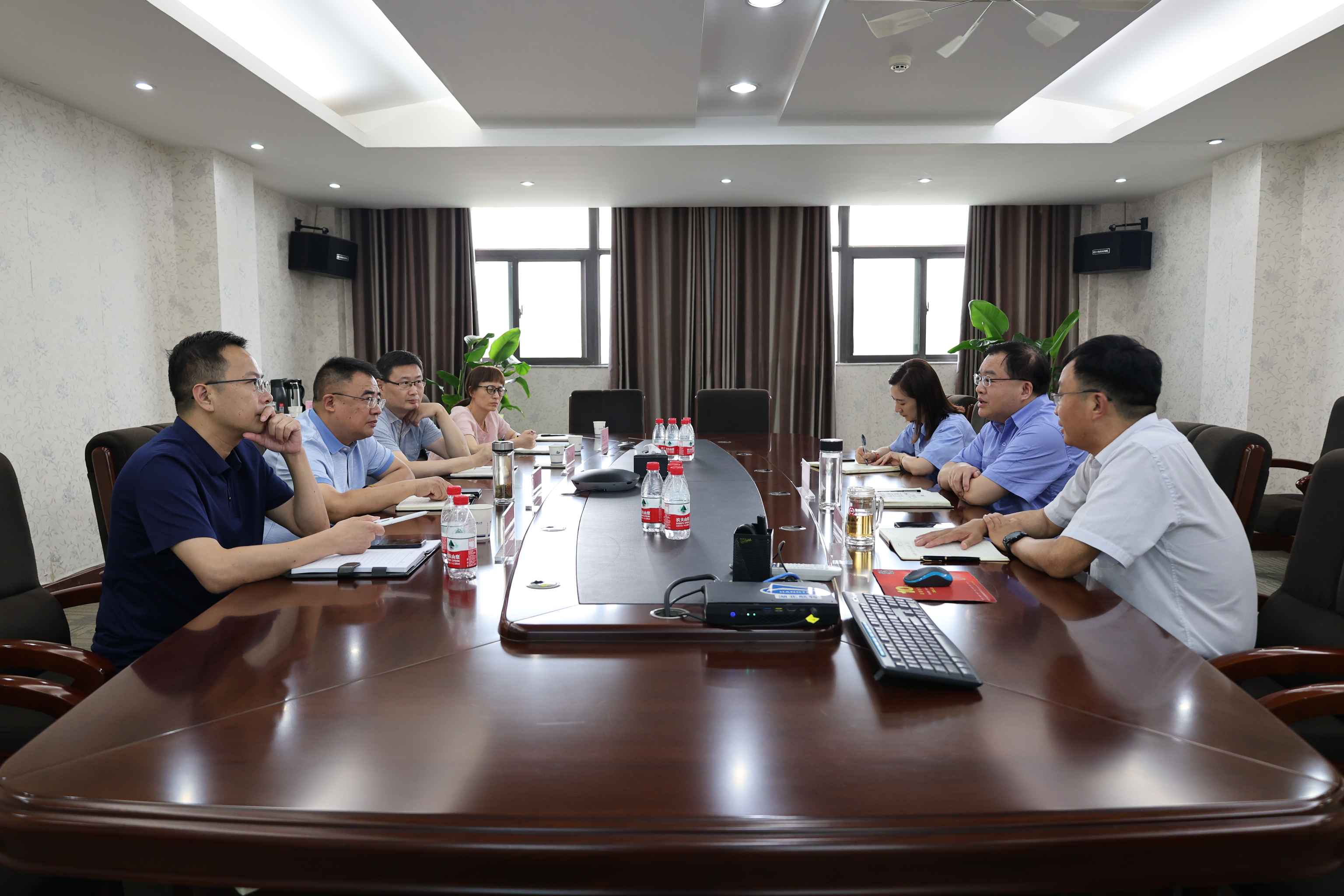 熊小平匯報了公司上半年經營情況,各產業收入指標完成情況以及上市進程。陳陽陵就行業環境的變化和公司當前市場形勢進行了解讀,并對市國資委對企業發展的關心表示感謝。